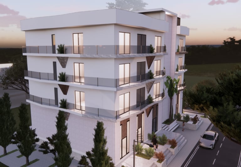 Over half of the apartments in this development have already been sold. The development is situated in Mali I Robit and is just hundreds of meters away from the beach. This complex will feature an outdoor swimming pool. Prices begin at €1200 per m². The ground floor of the first 10 complexes will be filled with shops, restaurants, supermarkets and more. The apartments in this building are expected to be available for move-in by the first quarter of 2027.